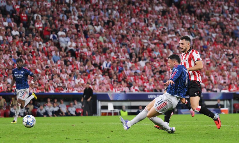 Gabriel Martinelli during the UEFA Champions League 2025/26 League Phase MD1 match between Athletic Club and Arsenal (Photo by David Ramos/Getty Images)