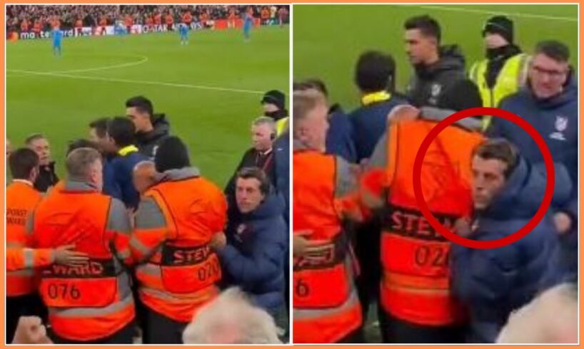 A member of Atletico Madrid’s coaching staff appeared to spit at some Liverpool fans during the fracas that broke out at Anfield yesterday evening.