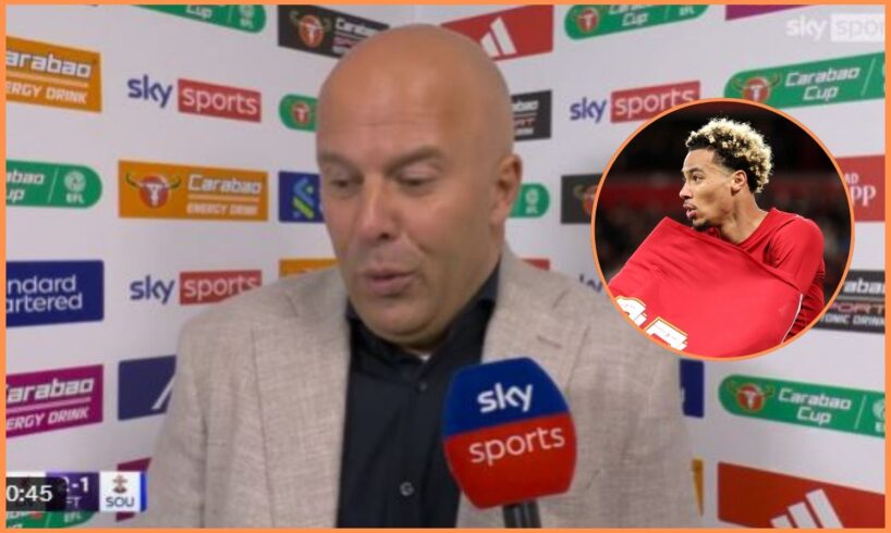 Liverpool manager Arne Slot was clearly not happy with Hugo Ekitike as he picked up a second yellow card for removing his shirt to celebrate last night’s winning goal against Southampton.